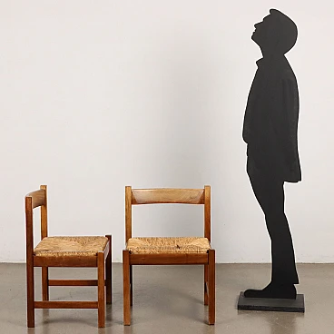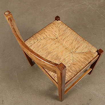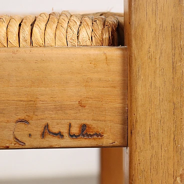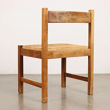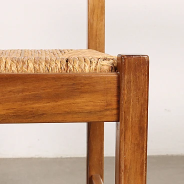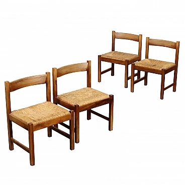 Group of 4 chairs designed by Michelucci in 1964; in stained beech wood, seats in woven raffia.
