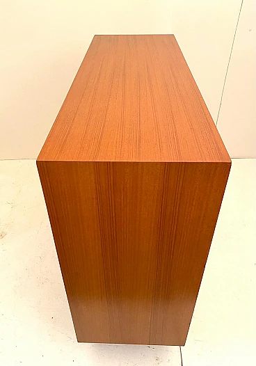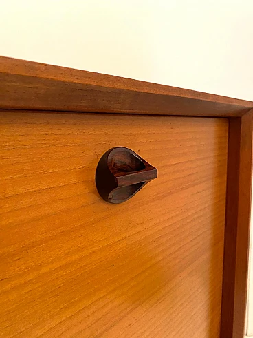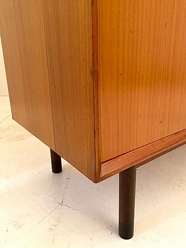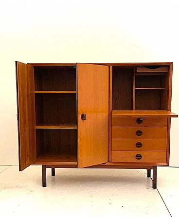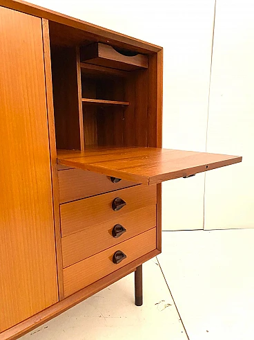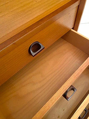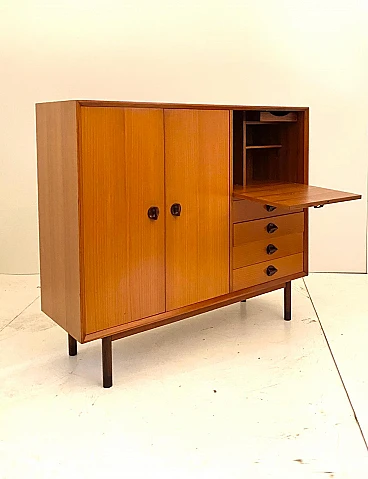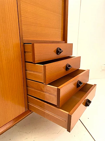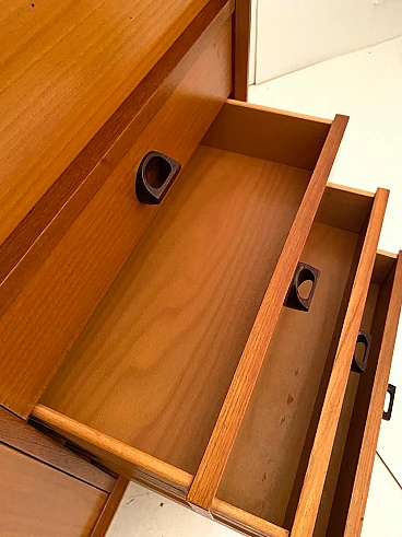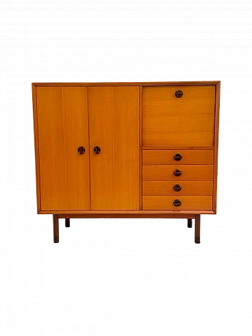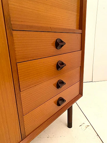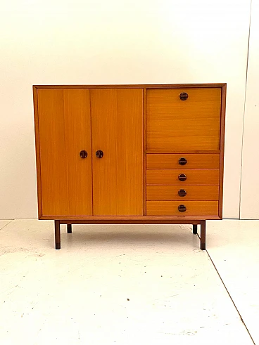 High beech sideboard by George Coslin for FARAM, 1960s. Solid wood main structure veneered in honey-colored beech with dark wood knobs and feet. Multiple drawers with shelves. Excellent condition with few signs of time, fully restored; wood has been refinished, drawers have been fixed and are fully functioning.