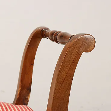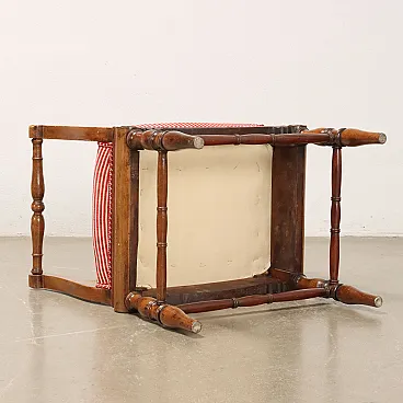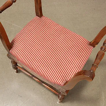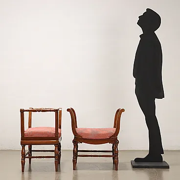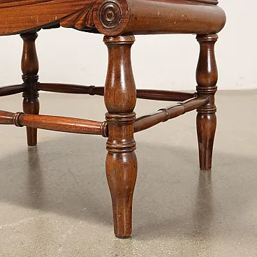 Pair of benches supported by turned legs connected by crosspieces, wavy armrests, features English-style decorative motifs. In walnut, the seat is padded.