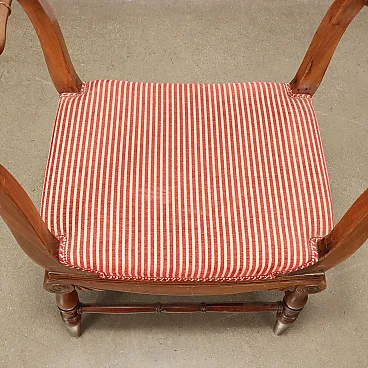 Pair of walnut benches with wavy arms & padded seat, 19th century