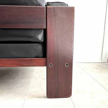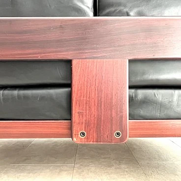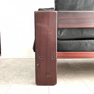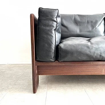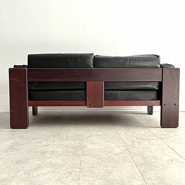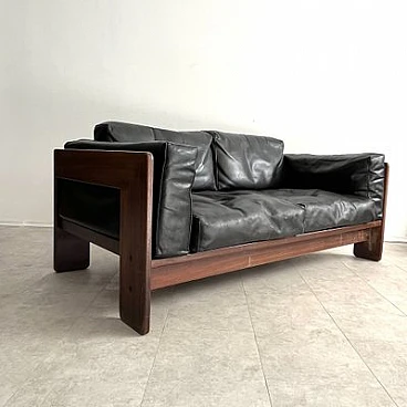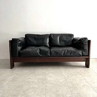 Two-seater sofa model Bastiano with wooden frame and leather covering. Production Knoll International, Italy, circa 1960. The sofa is characterised by a wooden frame and black leather upholstery. The frame is sound and sturdy, the leather shows signs of wear, see pictures. If you like this look, you can use the product as it is, or you can replace only the leather on the back or upholster it completely if you prefer a more refined look. Incredibly comfortable, absolutely chic and with a sophisticated style, the work of the well-known Italian architect and designer.