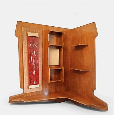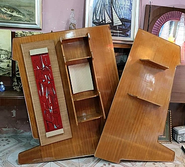 Ash corner bookcase with lacquered details, 1950s