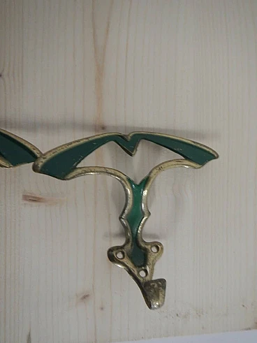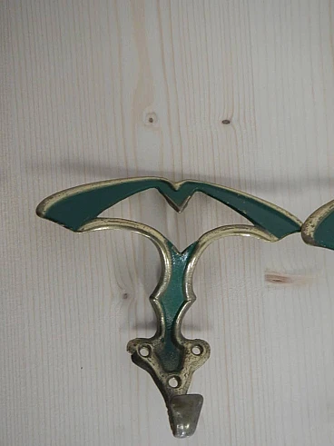3 Gilded and green laquered iron clothes hangers, 1950s