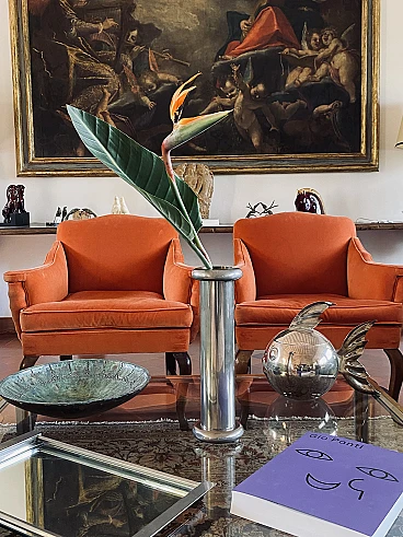 Modern metal vase, Italy circa 1970s. Dimensions H x 12 diam. cm. Excellent condition, two barely visible dents.