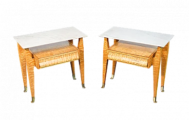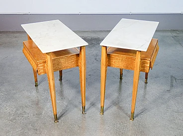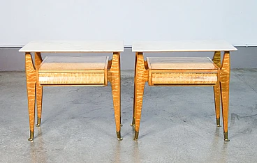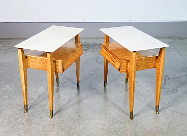 Pair of elm-root and marble bedside tables, 1940s