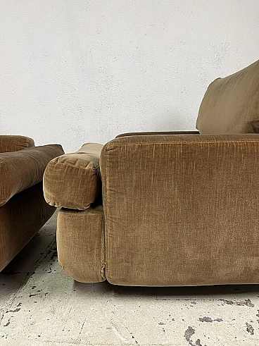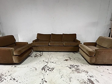 Sofa and pair of armchairs in beige fabric by Saporiti, 1970s