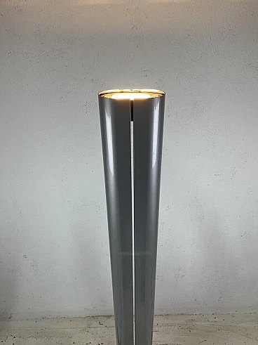Silver painted metal Megaron floor lamp by Gianfranco Frattini for Artemide, 1980s. It has been carefully cleaned and is in excellent condition.