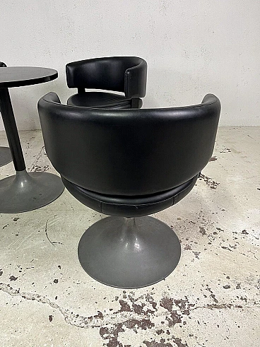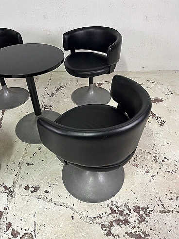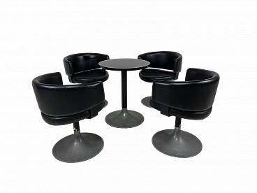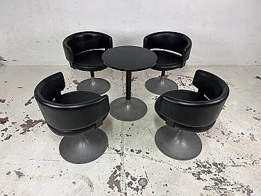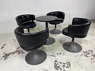 4 Space Age armchairs and side table in vinyl and metal, 1960s