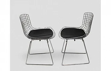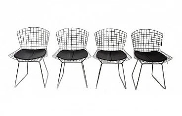 This set of four chairs was designed by Italian-American designer Harry Bertoia and represents a perfect balance between functionality and art. with an open and lightweight design, the chairs are made of metal, with a steel wire grid structure. Despite the minimalist look, they come with black cushions on the seat to ensure comfort during use. The thin, tapered legs give the chairs a sleek, contemporary look, while the lack of armrests contributes to their airy aesthetic.