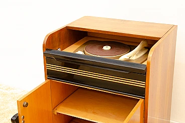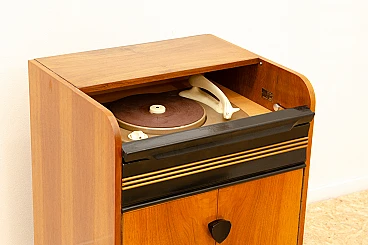 Czechoslovakian walnut cabinet with record player and radio, 1950s