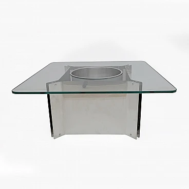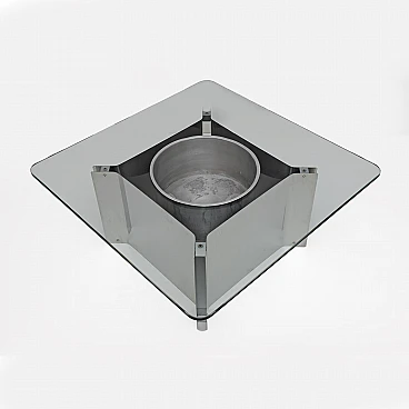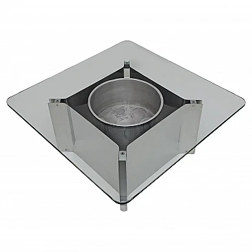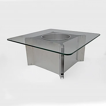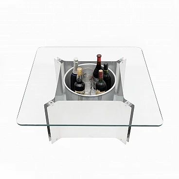 Steel and glass coffee table with bottle holder, 1970s