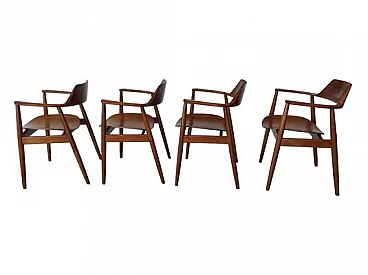 4 Chairs with armrests in teak by Wilkhahn, 1950s