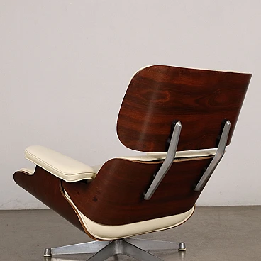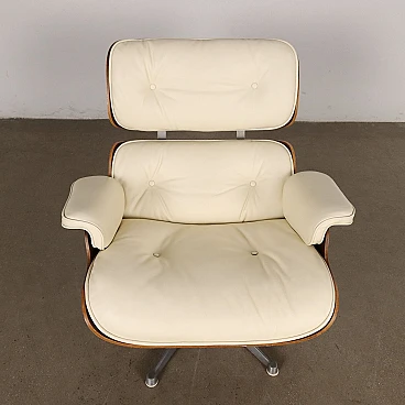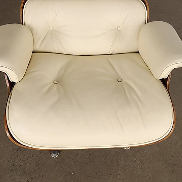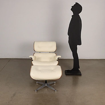 Armchair & pouf in white leather by C. O. Eames for H. Miller, 1970s