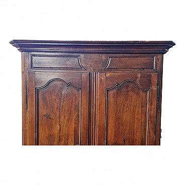 Provencal walnut wardrobe supported by wavy feet, on the front has two panelled doors and with carved and shaped frames. With key, original hardware. Dimensions (WxDxH) cm 163 x 60 x 234.