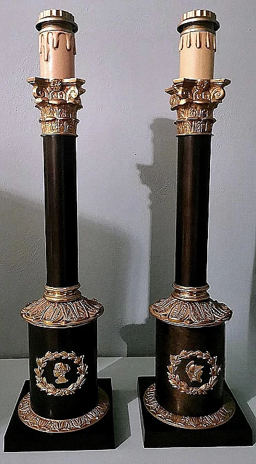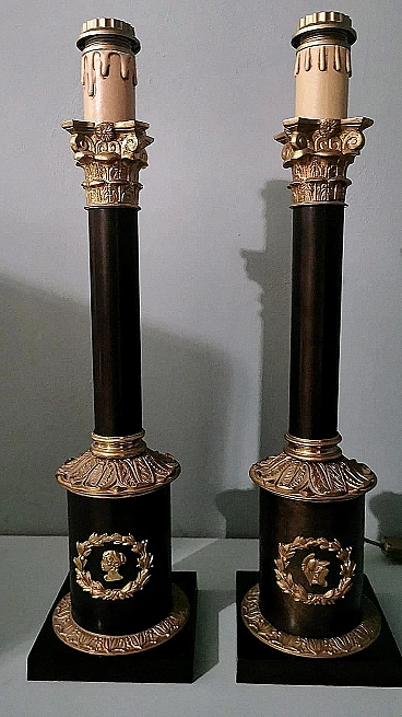 Exceptional pair of table lamps in perfect and iconic Empire style;