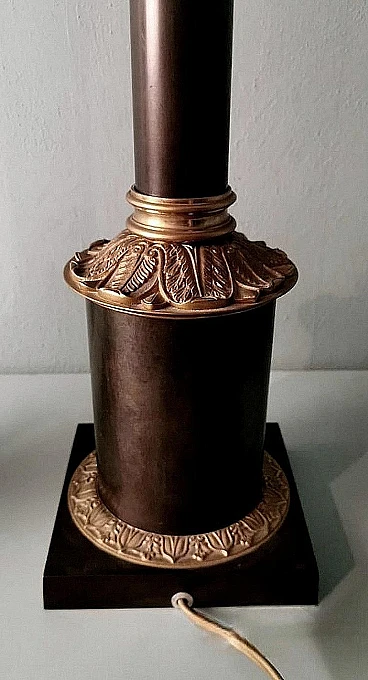 was characterized by grandeur, symmetry, and classical motifs inspired by ancient Greek and Roman art. Rich materials such as bronze and brass were favored for decorative objects such as lamps, chandeliers, and furniture. In Florence, artisan workshops carried on this tradition, producing Empire-style lamps with meticulous attention to detail and craftsmanship. These lamps featured ornate designs, classical motifs, and a sense of opulence that defined the Empire aesthetic. Empire-style table lamps from this era often featured classical motifs such as laurel wreaths, acanthus leaves,