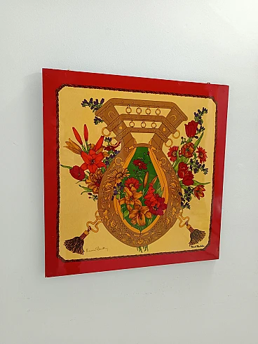 Made in Italy, 1980s. This is a decorative panel coming from a fashion atelier dating back to the 80s. It is a print on wood, which is covered with glossy polyester film bearing the signature of Renato Balestra,