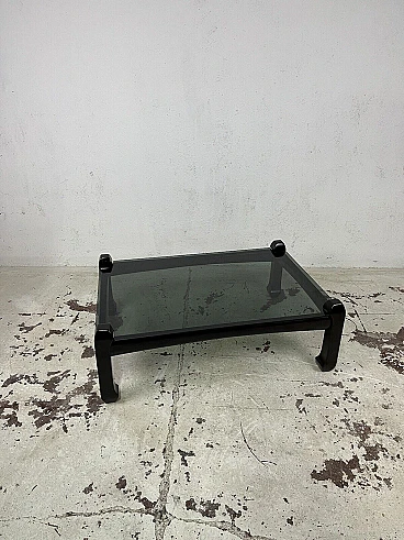 Samurai wooden and glass coffee table by Luciano Frigerio, 1970s