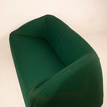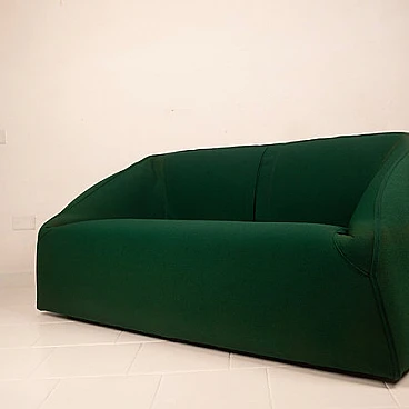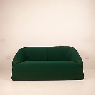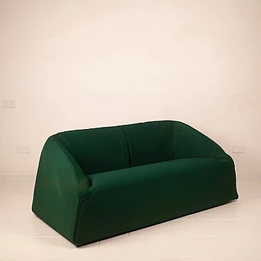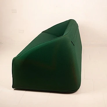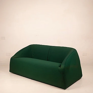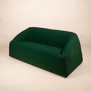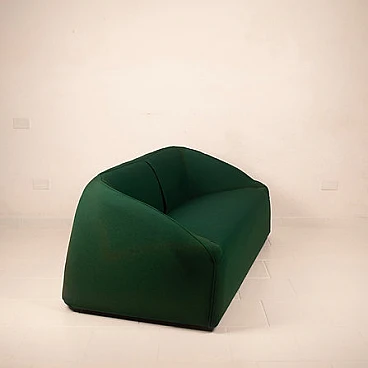 Siviglia sofa by Kazuide Takahama for Simon Gavina, 1990s. Homage and evolution of the Mantilla sofa designed by the same man twenty years earlier. Structure in expanded polyurethane with original green fabric upholstery, in excellent condition except for some small stains on the back due to placement on the wall (see photos). Bibliography: Catalog "Simon, Collezione Gli Autori", pp. 90-91.
