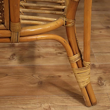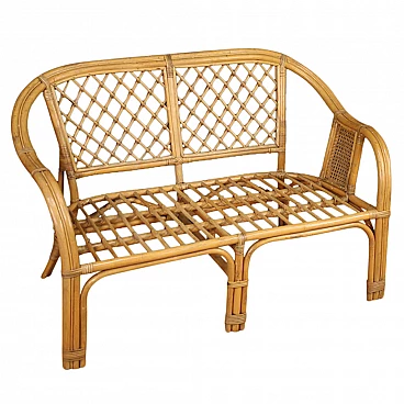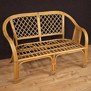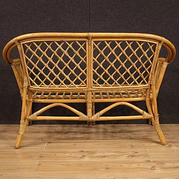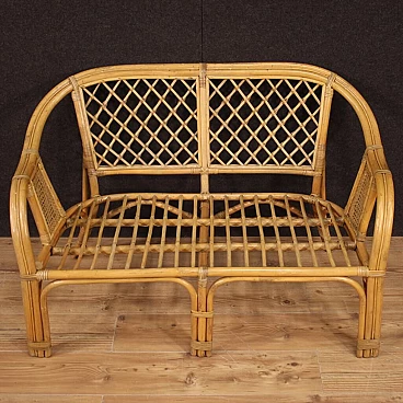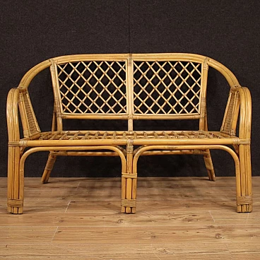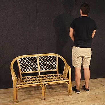 Italian sofa of the years 60/70. Wicker furniture, woven wood and vienna straw of beautiful line and pleasant furnishings. Sofa missing cushions that is part of a living room complete with two armchairs and coffee table (see photo and ask for the price in block if available). Seat height of 36 cm. Furniture for antique dealers and decorators, ideal to be placed in a living room or outside, under a porch. Sofa that presents some signs of the time, overall in a fairly good state of preservation.