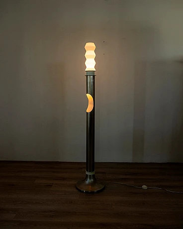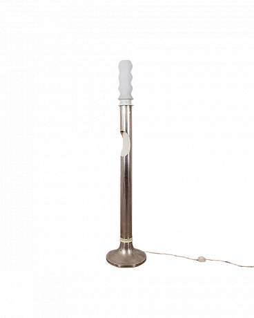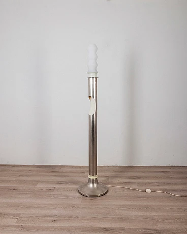 Chromed metal and white glass 2-light floor lamp, 1970s