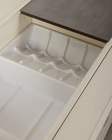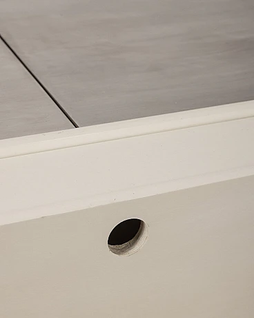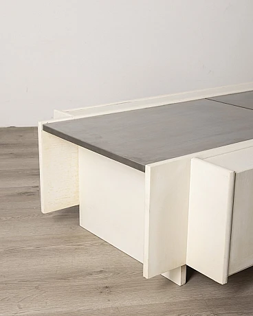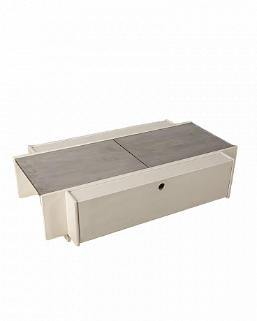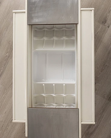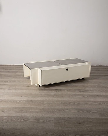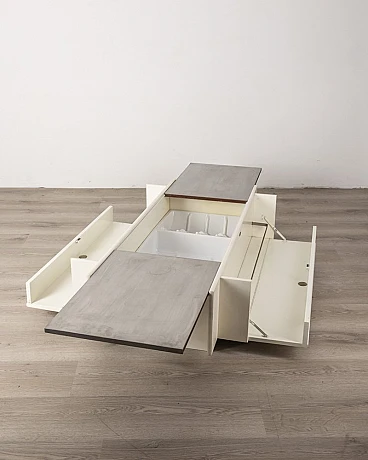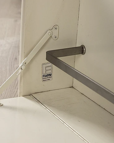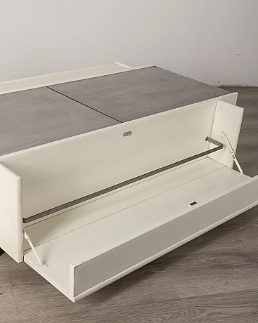 White wooden bar table with lateral doors and central opening with chromed metal doors. Fiarm design, 1960s.