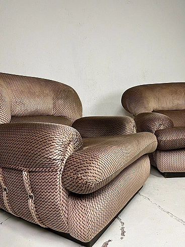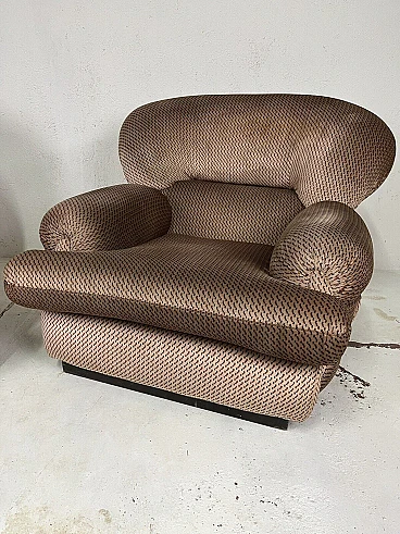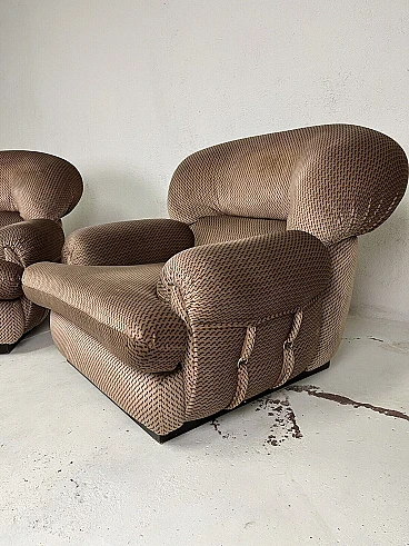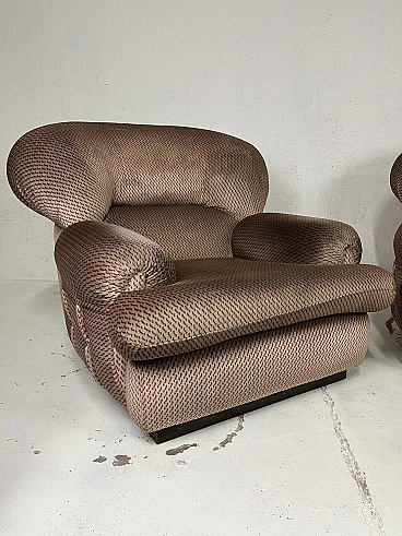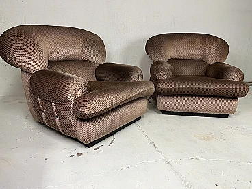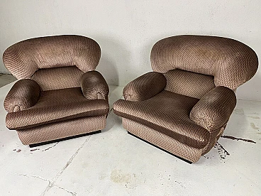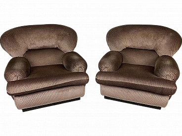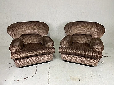 Pair of armchairs, 1960s. Structure in black painted wood, large padding covered with fabric typical of the Space Age period. They have been carefully cleaned and are in perfect condition. The fabric is intact and the padding perfect.