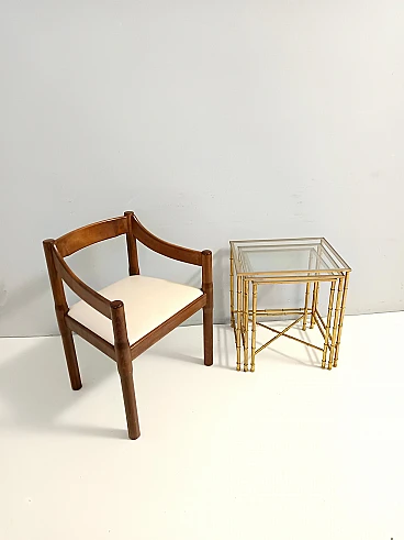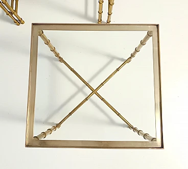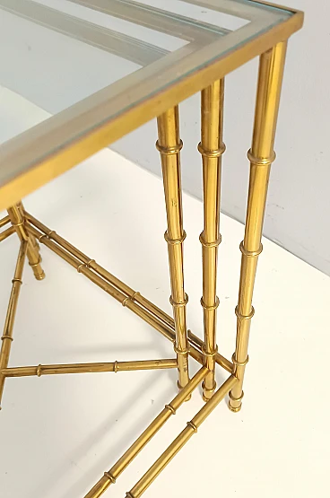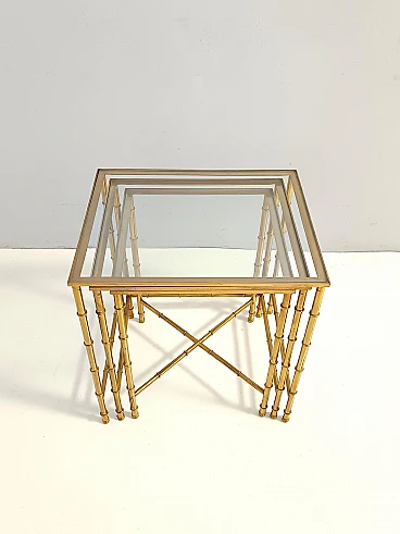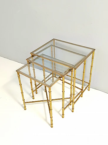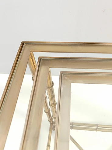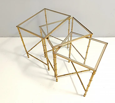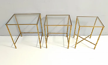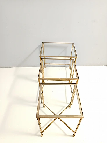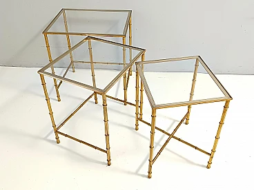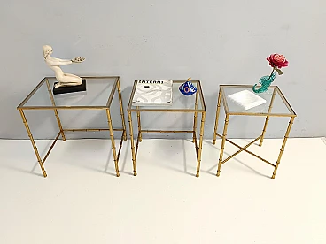 3 Nesting tables in brass and glass in the style of J. Adnet, 1960s