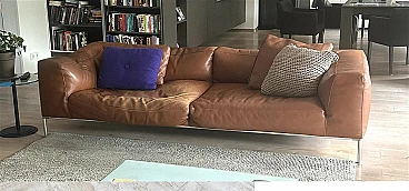 Frank sofa in cognac leather by A. Citterio for B&B Italia, 2000s