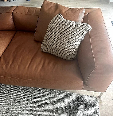 Frank sofa in cognac leather by A. Citterio for B&B Italia, 2000s. Very refined Frank sofa by B&B Italia in soft and thick Maxalto cognac leather. Highest quality leather made directly from the Maxalto tannery. Model designed by Antonio Citterio and launched in 2008. The sofa has been used, but to a limited extent, and has no particular obvious damage due to wear and tear. Or lack of parts. There are only traces of use mainly on the seats and matching cushions. The right side seat is discolored. One of the two seat cushions has a change in the volume of the padding. With a modest intervention and a specific product for the skin, it returns to a pleasant shine. The leather around the perimeter of the armrests and backrest of the sofa is in very good condition, as is the perimeter and vertical metal structure of the legs. Purchased in 2012 for €12,500. Economic request 3995 euros. Width 250 cm; Depth 75 cm; Height 65 cm; Seat height 35 cm. Signs of use on the leather of the seat cushions: Discoloration. With special products the skin will regain the shine that has faded in these parts. Sofa with generous and comfortable dimensions.