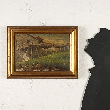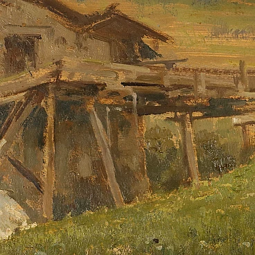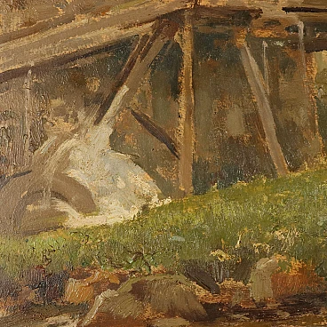Carlo Vittori, Landscape with windmill, oil on cardboard