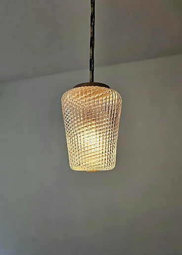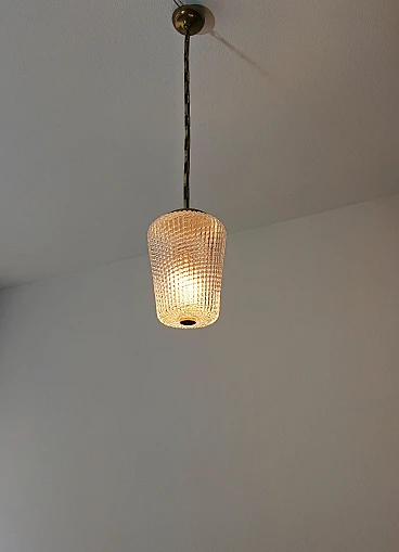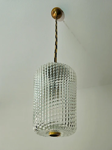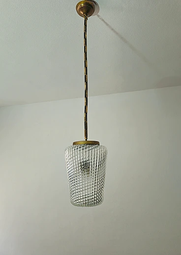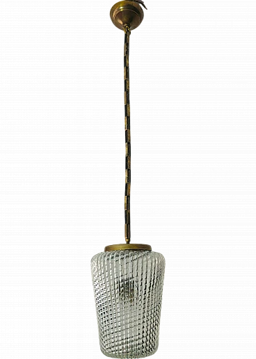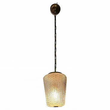 Glass and brass hanging lamp by Archimede Seguso, 1940s