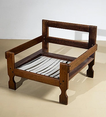 Pair of zebrano wood and teal fabric armchairs, 1950s