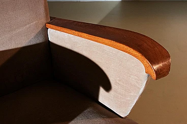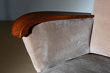 Pair of wooden armchairs upholstered in beige fabric, 1940s