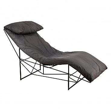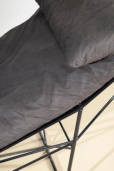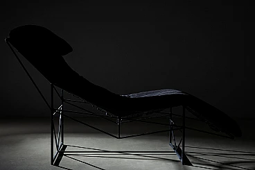 Beautiful Chaise Lounge, designed by Paolo Passerini for Uvet Dimensione in 1985. Black lacquered steel lattice frame and original black cloth upholstery. Bibliography: G. Gramigna, Repertory of Italian design 1950-2000, p. 344, Allemandi, 2003.