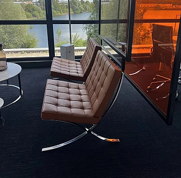 Pair of Barcelona armchairs by Mies van der Rohe and Reich for Knoll