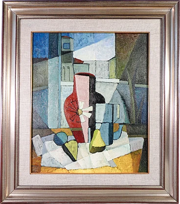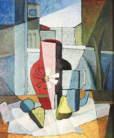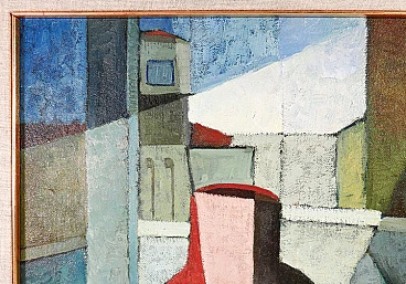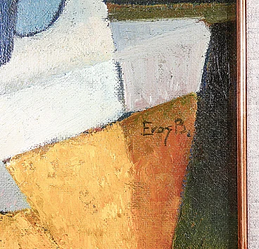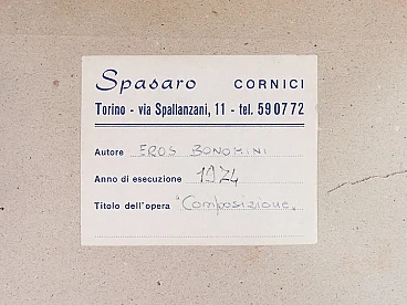 Eros Bonamini, Composition, oil painting on masonite, 1974