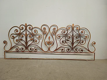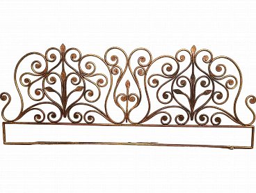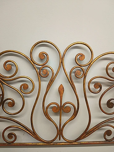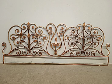 Antique wrought iron headboard, painted with gold highlights, 19th century. Antique headboard in excellent condition with wrought ironwork and vaulted leaves. Beautiful. Height 67 cm, length 165 cm, depth 2 cm.