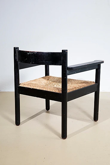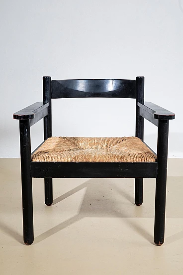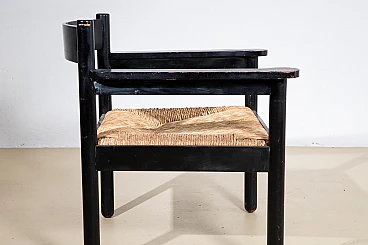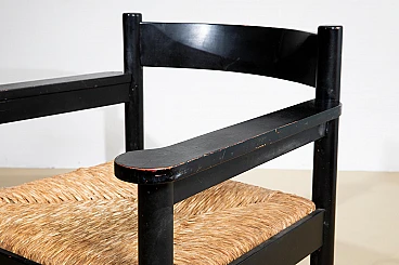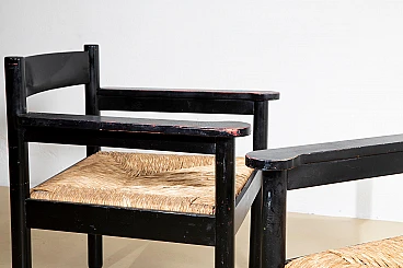 Pair of armchairs in wood & straw attributed to Magistretti, 1960s