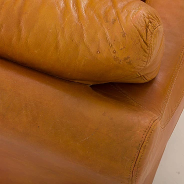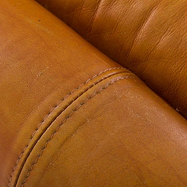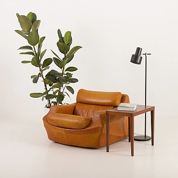 The lounge chair is in original condition, with patina from age that adds character. There are also slight discoloration and wrinkles, that are part of the natural aging process of aniline leather. The chair has been reconditioned with a special leather wax, this process can be repeated over time for adding a lively look. Aniline leathers last very long. Seat height: 36 cm, armrests height: 48 cm.