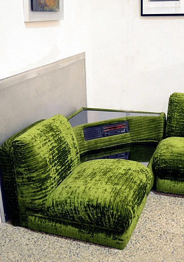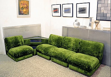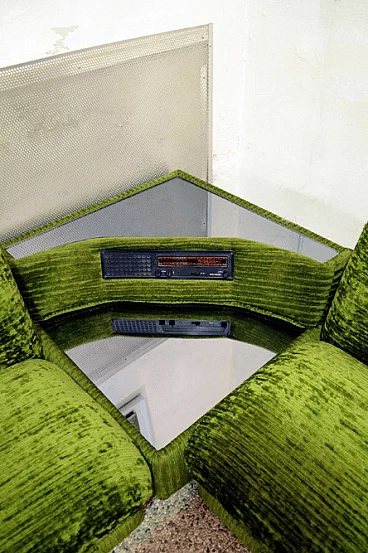 Modular green sofa with coffee table and radio, Italy, 70's