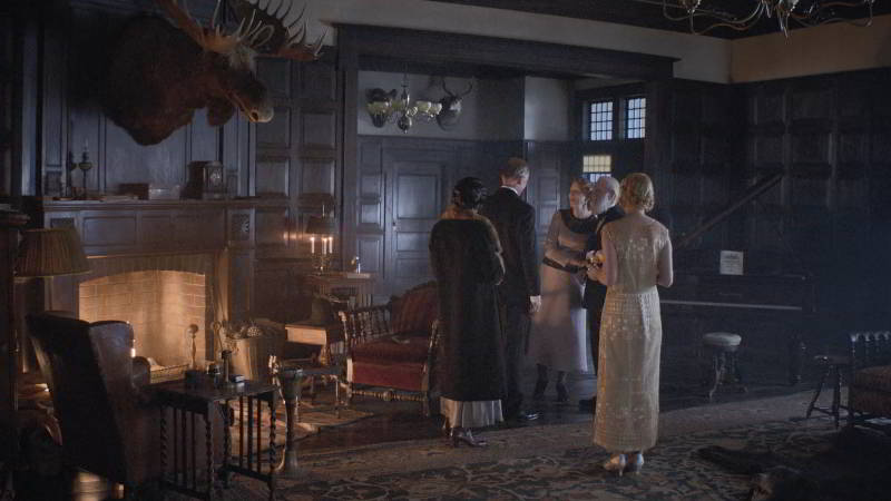 Eleganza austera invece per The Power of the Dog - Il Potere del Cane, firmato dalla grande regista neozelandese Jane Campion. Interpretata da Benedict Cumberbatch e Kirsten Dunst, la pellicola è stata girata dalla Campion tra le montagne della sua natia Nuova Zelanda, per ricreare la vita di un ranch americano del Montana negli anni '20, dove si susseguono avvenimenti misteriosi. L'interno della casa condivisa dai protagonisti, i fratelli George e Phil, è volutamente cupa in contrasto con la natura del paesaggio luminoso che la ospita, ed è stata modellata sulla Sagamore Hill, quella che fu la casa del presidente americano Theodore Roosevelt dal 1885 al 1919. Prevale il legno scuro: sulle travi del soffitto, sulle pareti a pannelli squadrati, sui mobili in stile '600 dalle gambe tornite. Il legno è intervallato dalla pelle che riveste accoglienti poltrone stile gentlemen club e da imponenti teste di animali imbalsamati montati sopra il camino.