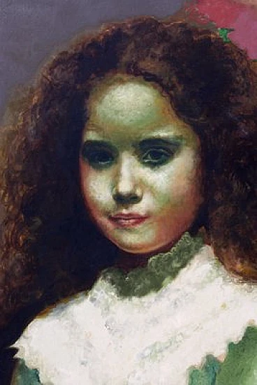 Questa tela di Mario Gianquitto, datata '83, è un fascinoso esempio di come l'arte possa esplorare le profondità dell'animo umano e i confini tra realtà e fantasia. Al centro dell'opera, troviamo il ritratto di una giovane ragazza, i cui capelli ricci e castani incorniciano un viso di una bellezza pura e al tempo stesso enigmatica. Il suo sguardo diretto e la presa delicata delle mani sembrano racchiudere un mondo interiore ricco di storie taciute. Nell'angolo in basso a sinistra, come se emergesse dall'ombra, si rivela la figura di un giullare dall'aspetto quasi etereo, con i suoi abiti vivaci che contrastano con i toni più sobri dello sfondo. La presenza di questa figura aggiunge un livello di surrealismo e intriga alla scena, suggerendo un legame nascosto tra la bambina e il personaggio favolistico. Il gioco di luci e ombre, unitamente all'uso di colori tanto vibranti quanto sfumati, crea una dimensione che è quasi onirica, portando l'osservatore a interrogarsi sulle storie nascoste dietro i soggetti raffigurati. Quest'opera non è semplicemente un dipinto da osservare, ma un enigma da risolvere, un viaggio nel soggettivo che solo l'arte sa offrire con tale maestria.
