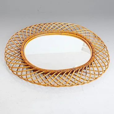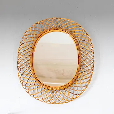 Specchio "Sunburst" nello stile di Bonacina in bamboo, anni '60