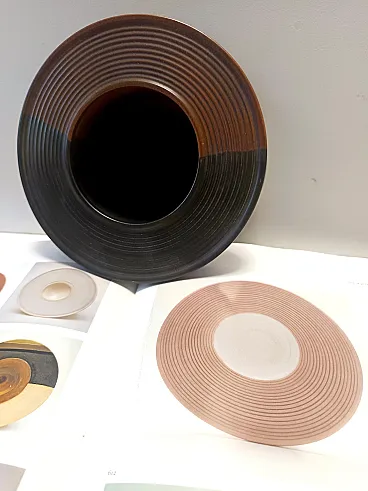 Black and Brown Hand-Painted Ceramic Piece by Franco Bucci, 70s