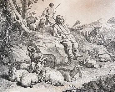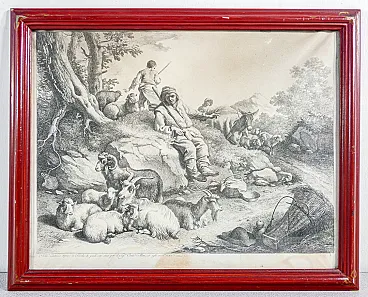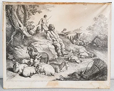 Incisione ad acquaforte di Francesco LONDONIO, Scena Bucolica. L'opera è in buone condizioni, come è possibile constatare dalle foto allegate. Riporta tracce del tempo visibili in foto, segni di umidità.