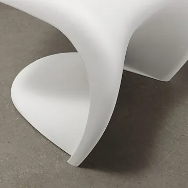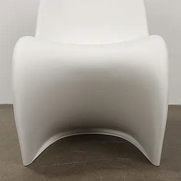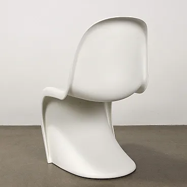 Set di quattro sedie disegnate da Verner Panton per una produzione Vitra anni \'80 -\'90. Realizzate in materiale plastico bianco, riportano il marchio.