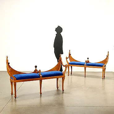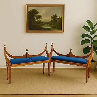Coppia di Panchette in Stile Biedermeier in ciliegio, '900