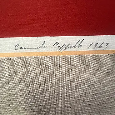 Carmelo Cappello (1912–1996) è stato uno dei principali esponenti dell’astrattismo italiano del dopoguerra. Nato a Ragusa, si trasferì presto a Milano, dove frequentò l’Accademia di Brera. La sua attività artistica si sviluppò inizialmente nel campo della scultura, con un linguaggio astratto fortemente influenzato dal Futurismo e dalle sperimentazioni spazialiste. Cappello partecipò a numerose edizioni della Biennale di Venezia e della Quadriennale di Roma, distinguendosi per la sua costante ricerca sul movimento, la luce e la forma. Le sue opere fanno parte di importanti collezioni pubbliche e private, e il suo contributo è oggi considerato fondamentale per comprendere l’evoluzione dell’arte astratta in Italia nel secondo dopoguerra.