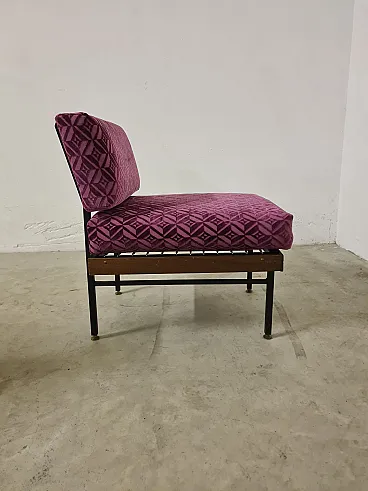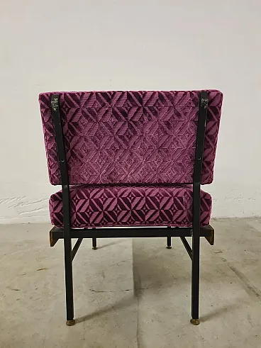 Coppia di poltroncine in metallo, legno e velluto, anni '60